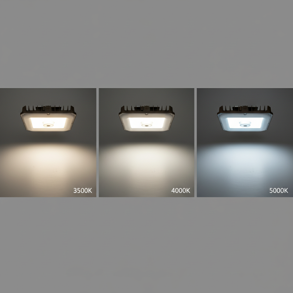Slim, Durable, and Lightweight Garage Canopy LED Light with Selectable CCT and Wattage.