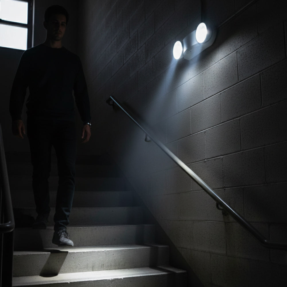 LED Dual-Head Emergency Light - Provides 120 minutes of emergency illumination with energy-efficient LED technology.
