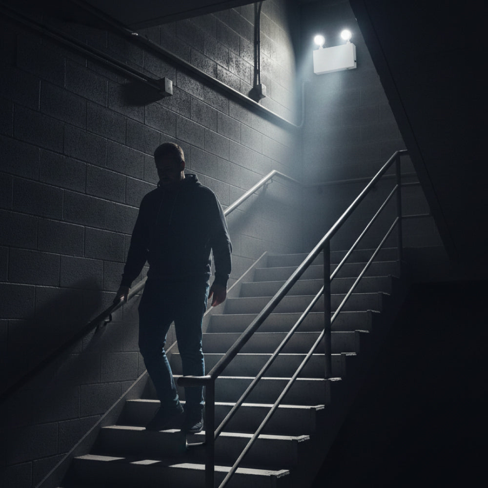 72W Max LED Dual-Head Emergency Light - Delivers up to 2 hours of emergency illumination with a maximum output of 72 watts.