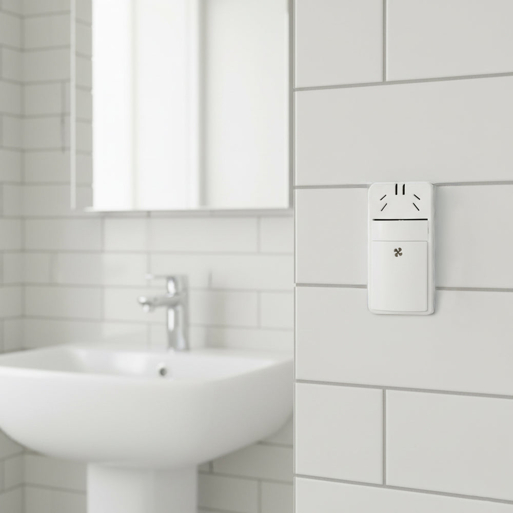 Humidity and fan control sensor designed to reduce bathroom condensation by automatically activating ventilation based on moisture levels, promoting a healthier and more comfortable environment.