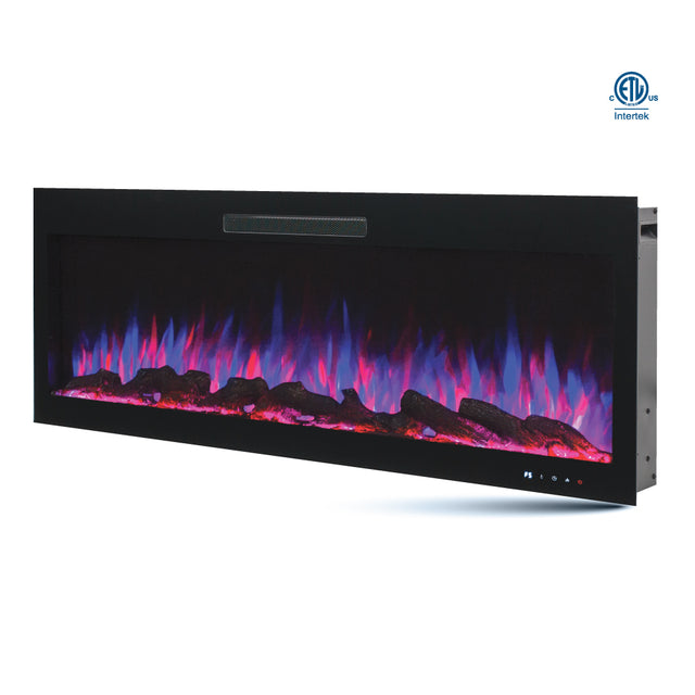 The 72" sleek, space-saving electric fireplace is designed for either wall-mounted or recessed installation, offering a seamless blend of modern style and cozy warmth to enhance any room.