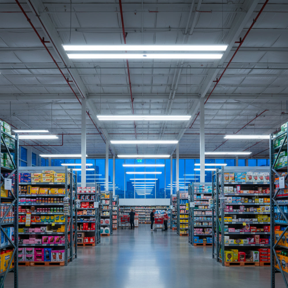 2 FT. Commercial-Grade LED Linear High Bay - Equipped with a built-in sensor, selectable color temperature (CCT), and adjustable wattage for efficient, customizable performance in high-ceiling spaces.