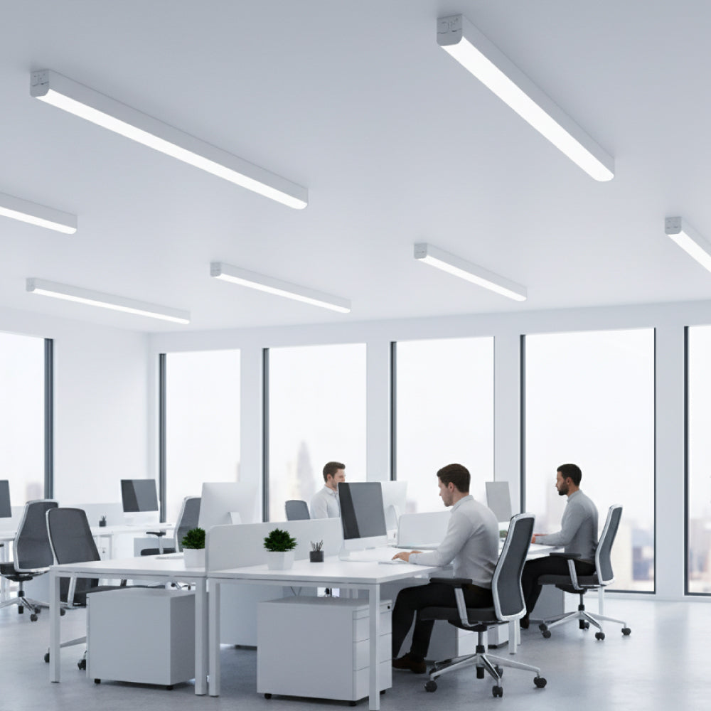 48" LED Linear Strip Light - Includes a built-in motion sensor with selectable color temperature (CCT) and adjustable wattage for smart, efficient lighting in compact areas.
