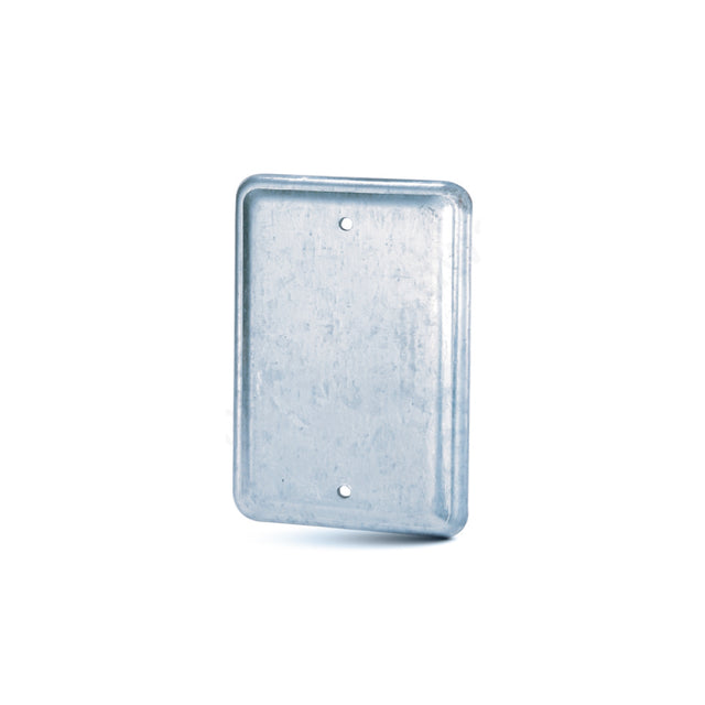 One gang square device cover plate, engineered to fit standard single-gang square electrical boxes, made from sturdy metal for enhanced durability and protection, designed to securely mount over devices while providing a clean, flush appearance, suitable for use in residential, commercial, or industrial settings.
