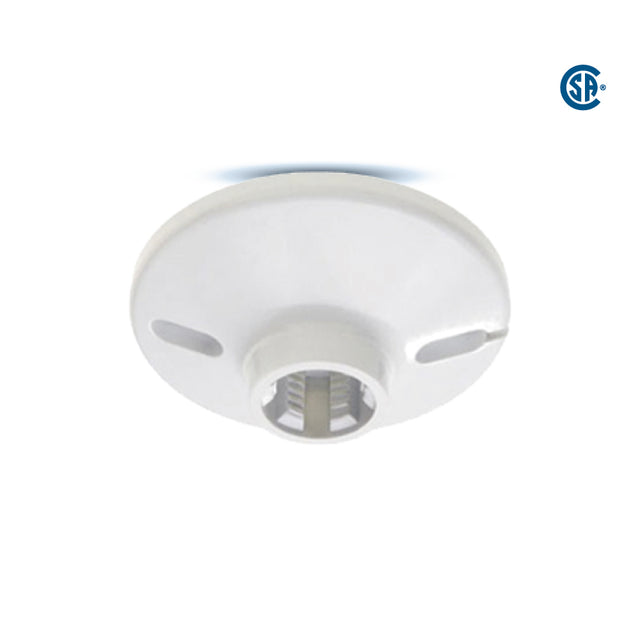 Plastic keyless lamp holder, designed for use with standard medium-base light bulbs, made from durable, heat-resistant plastic for safe and long-lasting performance, features a simple screw-in socket without a built-in switch, ideal for closets, basements, utility rooms, and other general lighting applications in residential or light commercial settings.