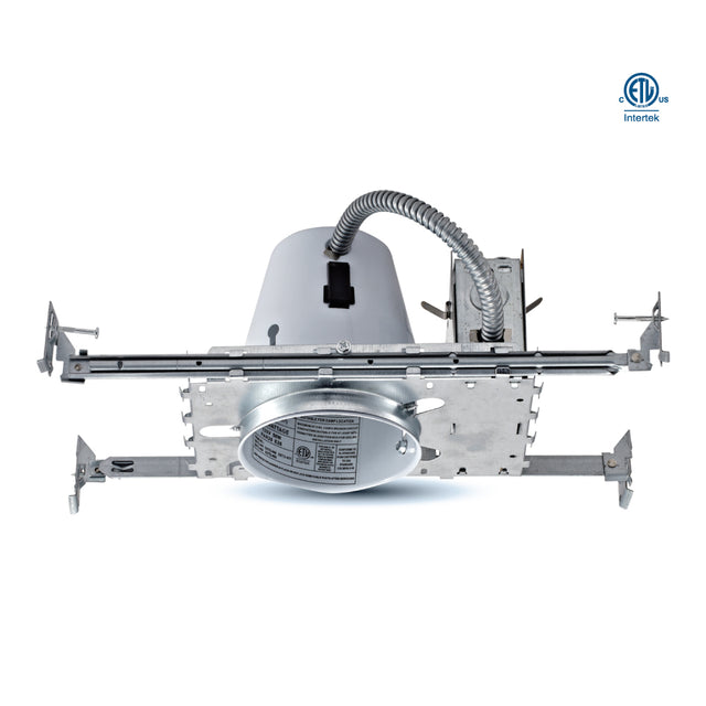 4" GU10 35W max. thermally protected air-tight housing, designed for recessed lighting applications using GU10 base bulbs up to 35 watts, features built-in thermal protection to prevent overheating and an air-tight construction to minimize energy loss and prevent airflow between conditioned and unconditioned spaces, ideal for residential and commercial ceilings requiring efficient and safe lighting solutions.