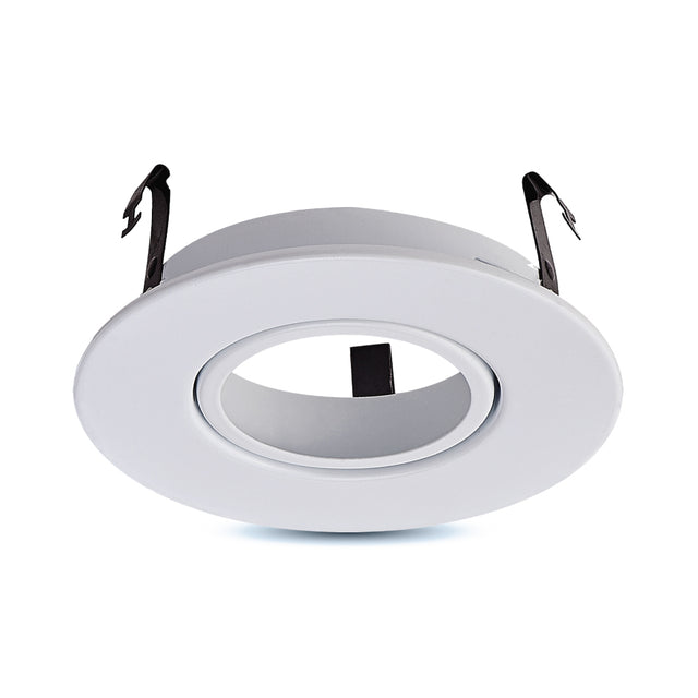 Round 4″ gimbal PAR20 50W max. voltage recessed light trim, designed for PAR20 bulbs up to 50 watts, features an adjustable gimbal mechanism for directional lighting and operates on line voltage, making it ideal for accent or task lighting in residential or commercial recessed applications.