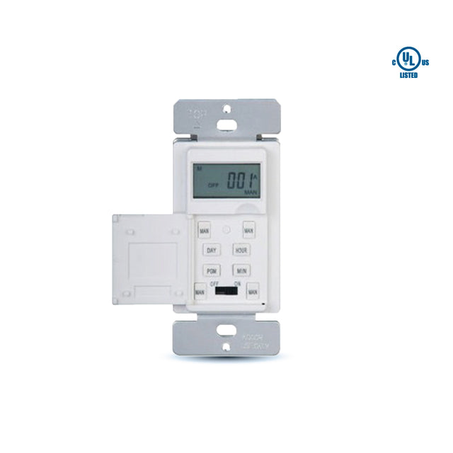 15-amp programmable 7-day digital timer featuring a daylight saving adjustment for precise, automated scheduling and energy efficiency.