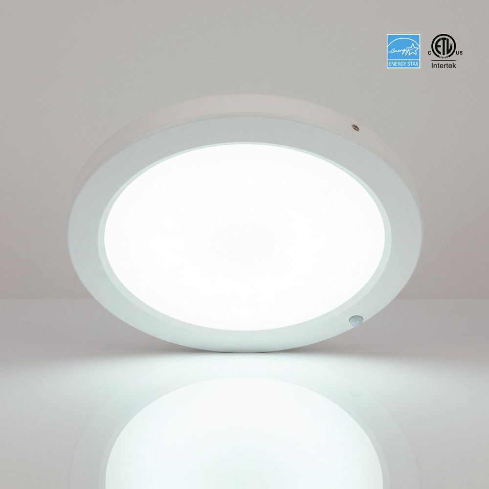 Éclairage LED rond de 9" pour placard - Équipé d'un détecteur de mouvement PIR et d'une température de couleur (CCT) sélectionnable pour un éclairage intelligent et personnalisable.